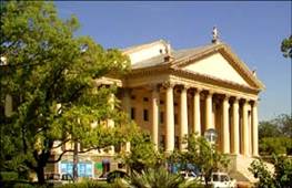 Посмотрите внимательно, портик здания венчается фронтоном, на котором установлены три женские фигуры. Это греческие музы Терпсихора, Мельпомена и Талия, - скульптуры, олицетворяющие Архитектуру, Живопись и Скульптуру, а опоясано здание восьмьюдесятью восьмью величавыми коринфскими колоннами.