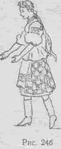 На «раз» — опуститься на правую ногу вперёд и чуть вправо, колено присогнуто. Левая нога невысоко поднимается вперед, колено свободно, подъем вытянут, но не напряжен (рис, 256).