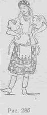 На «два» — второй подскок на всей ступне левой ноги, колено согнуто. Одновременно правая нога, вытягиваясь в колене, выворотно становится на каблук вперед и чуть вправо. Корпус слегка поворачивается левым плечом вперед, голова поворачивается к левому плечу (рис. 286).