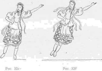 На «затакт и» — слегка присев на левой ноге, поднять правую невысоко в сторону (рис. 32а).