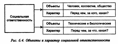 Параметры социальной ответственности. Многосторонний характер деятельности человека порождает различные виды ответственности: за техническое состояние какого-либо объекта, за сохранность флоры и фауны на закрепленной территории, за результаты деятельности подчиненных людей и т.д. (рис. 6.4).