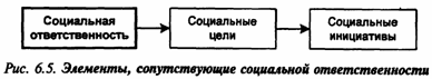 Социальная ответственность возникает при выполнении служебных, семейных, гражданских, общественных и личных обязанностей. Она отражает склонность личности придерживаться в своем поведении общепринятых в обществе социальных норм и отвечать за результаты их исполнения. Примером может служить «Клятва Гиппократа» — общепринятая норма социальной ответственности для врачей перед пациентами. Социальная ответственность может быть индивидуальной, групповой и общественной. Она неразрывно связана с реализацией социальных инициатив в рамках принятых социальных целей (рис. 6.5).