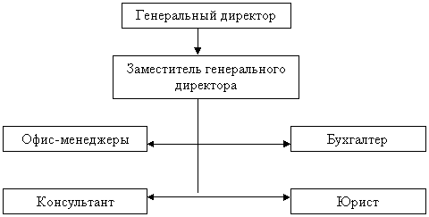 Организационная структура организации является довольно простой в связи с малыми ее размерами и относительно небольшим количеством сотрудников. Эту структуру можно изобразить в следующем виде: