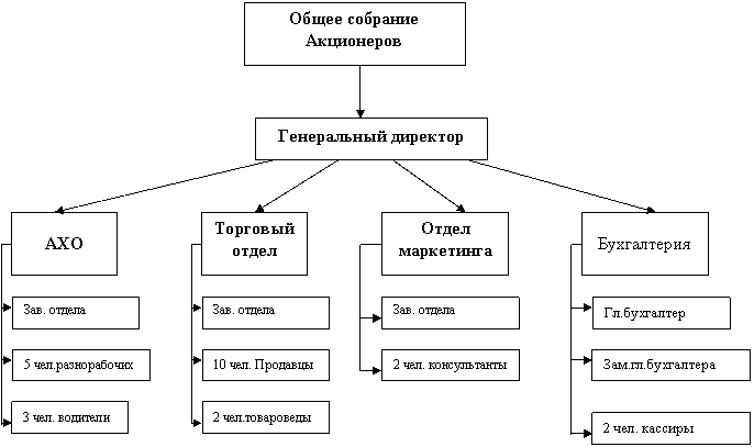 Торговый отдел занимается непосредственно процессом торговли товарами. Он состоит из заведующих отделами, продавцов и кассиров-контролеров.