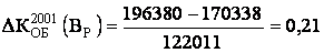 Отрицательное влияние изменения величины оборотного капитала на оборачиваемость оборотного капитала в 2001 г. превысило положительное влияние изменения объема выручки, и коэффициент оборачиваемости оборотного капитала уменьшился на 0,1 (0,21-0,31).