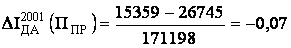 Влияние изменения прибыли от продаж на индекс деловой активности в 2001-2002 гг. составило: