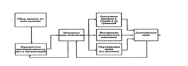Процесс планирования в компании начинается с определения исходных целей ее развития и деятельности, в основу разработки которых многие компании кладут цели-миссии (рис. 1). По сути дела цели-миссии, или главные стратегические цели, — это видение того, что из себя должна представлять компания или за что она должна бороться. В них должны быть отражены интересы всех групп влияния (акционеры, менеджеры, сотрудники и рабочие, поставщики, банки, правительственные учреждения, местные органы управления, общественные организации и др.). Цели-миссии должны подчеркивать социальную значимость компании и служить средством консолидации и мотивации персонала компании. Интересы заинтересованных лиц и организаций (групп влияния) учитываются также при выработке исходных целей компании.