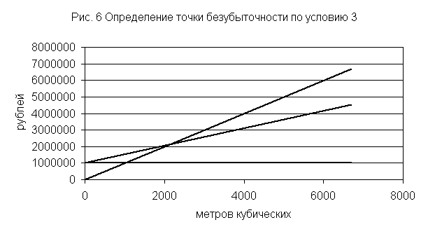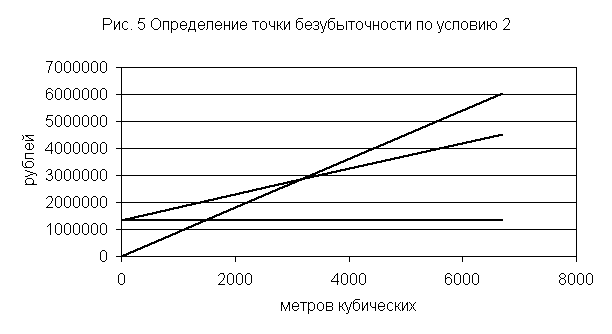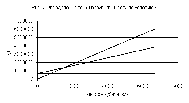 Из всех вариантов наиболее выгодными являются варианты 3 и 4, но предпочтительнее 4 т.к. при одинаковой прибыли, порог рентабельности в 4 варианте заметно ниже (2116 м3 в 3, 1576 м3 в 4).