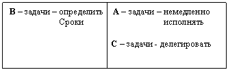 В – задачи: важные, несрочные – определить, в какие сроки их следует выполнять.