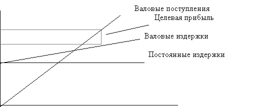 Это еще один метод ценообразования на основе издержек. Фирма стремится установить цену, которая обеспечит ей желаемый объем прибыли. Такая методика ценообразования основывается на графике безубыточности. На нем представлены общие издержки и ожидаемые общие поступления при разных условиях объема продаж. Гипотетический график показан на рисунке 2.4.