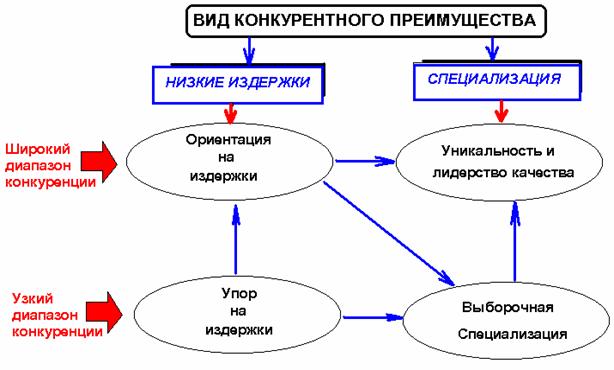 Есть фирмы, стратегия конкурентной борьбы которых основана не на специализации, а на более низких издержках производства. Они изготавливают большой ассортимент продукции стандартного мирового уровня качества и со стандартной ценой.