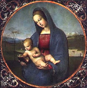 Рафаэль родился в 1483году в городке Урбино. Первые уроки рисования и живописи он получил у своего отца - художника и поэта Джованни Санти. В 17 лет Рафаэль приехал в город Перуджу и стал учеником художника Перуджино. В 1504 году Рафаэль приезжает во Флоренцию - город, где в то время живут и работают величайшие художники Италии Леонардо да Винчи и Микеланджело. Здесь есть у кого учиться. И Рафаэль учится. Учится и работает. Более всего в это время его привлекает образ мадонны (богоматери) с ребенком - "периодом мадонн" называют флорентийский период творчества Рафаэля. Нежной и юной матерью изображает Рафаэль мадонну, он прославляет в ней гармоничного человека, прекрасного душою и телом. Мадонны Рафаэля полны такой прелести, что один из счастливых владельцев его картины, изображающей мадонну ("Мадонна Грандука"), герцог Тосканский, никогда не расставался с ней и даже возил с собой в путешествиях. Написанный в эти годы автопортрет совершенно естественно входит в цепь прекрасных образов, созданных им: так обаятелен, изящен и приветлив молодой художник.