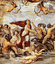 РАФАЭЛЬ САНТИ (1483 - 1520), итальянский живописец и архитектор. Представитель Высокого Возрождения. С классической ясностью и возвышенной одухотворённостью воплотил жизнеутверждающие идеалы Возрождения. Ранние произведения ("Мадонна Конестабиле", около 1502-1503)проникнуты изяществом, мягким лиризмом. Земное бытие человека, гармонию духовных и физических сил прославил в росписях станц (комнат) Ватикана(1509-1517), достигнув безупречного чувства меры, ритма, пропорций, благозвучия колорита, единства фигур и величественных архитектурных фонов. Многочисленные изображения Богоматери ("Сикстинская Мадонна", около 1513), художественные ансамбли в росписях виллы Фарнезина (1514-1518) и лоджиях Ватикана(1519, с учениками). В портретах создан идеальный образ человека Возрождения ("Б. Кастильоне", 1514-1515). Проектировал собор святого Петра, строил капеллу Киджи церкви Санта Мария дель Пополо (1512 - 1520) в Риме. "Дама с единорогом" из галереи Боргезе в Риме. Современный вид произведения - результат расчистки, произведённой во время реставрации 1930 года, в процессе которой под слоем с изображением Святой с атрибутами Екатерины Александрийской обнаружили изображение светской молодой женщины, сжимающей в руках единорога - символ целомудрия. Следуя интуиции Лонги, критики видят в этом произведении работу Рафаэля и относят её к 1505 году, точнее, к флорентийскому периоду. Это произведение справедливо может быть причислено к портретам того времени, переломного в творчестве Рафаэля. Наполненность прекрасно выстроенных форм хорошо читается на фоне широкого ландшафта, исполненного в духе Леонардо, но по - рафаэлевски ясного.