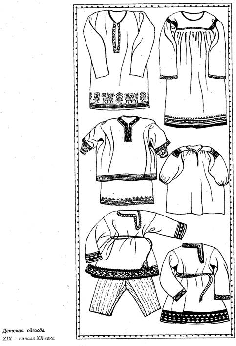 Детская одежда древних славян была одинакова для девочек и для мальчиков и состояла из одной длинной, до пят, полотняной рубахи. Право на «взрослую» одежду дети получали только после обрядов инициации (об этом подробнее см. в главе «Взросление»).