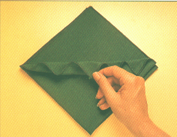 Складывая салфетки, надо стараться как можно меньше касаться их руками. Перед едой салфетку следует расстелить на коленях так, чтобы в случае надобности ею можно было легко воспользоваться. Этой салфеткой слегка промокают только уголки рта. После трапезы салфетку складывают и кладут справа от тарелки.