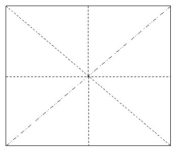 Нужно сложить квадрат бумаги пополам, чтобы получился прямоугольник. Необходимо развернуть лист и повернуть его. Сделать то же самое еще раз. Вновь развернуть лист. Перегнуть по диагонали. Перевернуть лист на другую сторону и перегнуть по другой диагонали (получился квадрат с линиями сгиба “горой” и линией сгиба “долиной”, как на рис. 1.). Аккуратно развернуть лист и нажать пальцем на центр. Бумага сама сложится в “двойной квадрат”. После этого, можно приступить к созданию цветов, для цветочной композиции, которые показаны на рис. 2 и рис. 3.