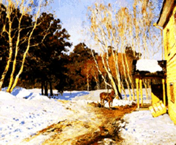 VI. Левитан сумел по-новому, свежо, проникновенно передать красоту деревенской улицы, трогательную околицу села, загадочность омута, осенний листопад, дрожащие обнаженные осины и рощи белоствольных берез, мартовскую оттепель и голубые тени на рыхлом ноздреватом снегу. Все сияло, пело и совершенно покоряло зрителей, узнавших в левитановских пейзажах свое, сокровенное, родное, чему название – Русь.