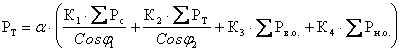 - соответственно коэффициенты мощности зависящие от загрузки силовых и технологических потребностей; принимаются