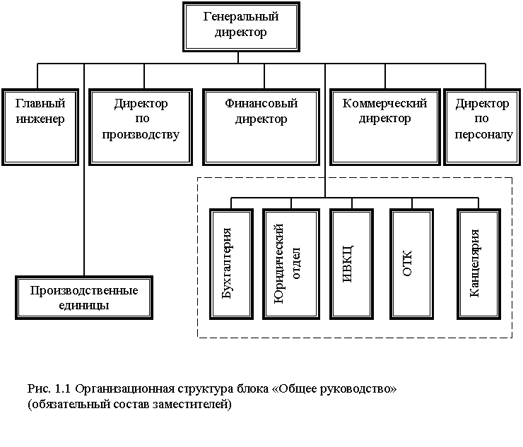 Блок «Общее руководство» – ведущее звено в общей структуре управления производственным предприятием (АО «Юнив»), призванное обеспечить единое взаимосвязанное руководство всеми сторонами его деятельности на основе определения и проведения в жизнь соответствующей экономической, социальной, организационной и технической политики.