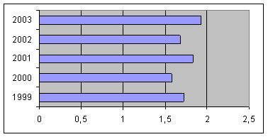 Имеет место рост доли собственного капитала и резервов с 85,9% на 01.01.2002 до 86,7% на 01.01.2003, что можно оценить как положительный факт, демонстрирующий увеличение финансовой устойчивости Общества.