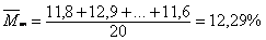 а) Найдем средние межлекальные выпады по 20 раскладкам.