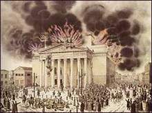 Пасмурным морозным утром 11 марта 1853 года по неизвестной причине в театре начался пожар. Пламя мгновенно охватило все здание, но с наибольшей силой огонь бушевал на сцене и в зрительном зале. "Страшно было смотреть на этого объятого огнем гиганта, - описывал пожар очевидец. - Когда он горел, нам казалось, что перед глазами нашими погибал милый нам человек, наделявший нас прекраснейшими мыслями и чувствами ." Двое суток боролись москвичи с пламенем, а на третьи здание театра напоминало развалины римского Колизея. Останки здания тлели еще около недели. В огне безвозвратно погибли театральные костюмы, собиравшиеся с конца XVIII века, превосходные декорации спектаклей, архив труппы, часть нотной библиотеки, редкие музыкальные инструменты.