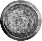 Блюдо имеет в диаметре более полуметра. В центре его четко выделяется традиционный квадрат "пряника" с золотистыми листьями на черном фоне, а по бортам - крупные ветви с красными и черными листьями и ягодами, исполненные уверенно и четко широкими мазками. Своеобразная суровость, увиденная мастером в природе и, может быть, свойственная его натуре, подсказала строгие и торжественные ритмы орнамента.
