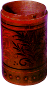 На поставцах и солоницах, имевших цилиндрическую форму, мастера создавали рисунки на четыре "цветка" или "древа", изображая поднимающиеся от земли побеги. На золотистом фоне они размещали по два красных и два черных стебля с узорной листвой на ветвях, как бы простирающихся к свету и солнцу. Еще и в наши дни старейшие художники Хохломы помнят, как их учили писать этот рисунок: "Тесно не пиши - пускай каждый из цветов свободно и широко раскинет свои листья, как человек, которому живется привольно". На совках для муки обычно писали стебли, отягощенные плодами - рисунок, подсказанный уже давно забытой символикой урожая. Почти все мотивы хохломского орнамента имели свои названия, которые были связаны с поэтическими представлениями мастеров о природе.