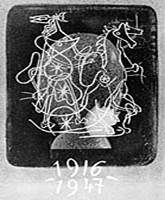 В 1908-1909 годах и Брак и Пикассо ищут приемы за пределами кубизма. После 1912 года начинается период так называемого “синтетического” кубизма, именуемого также “кубизмом представления” Принцип создания художественного пространства заключался в наполнении изобразительной плоскости элементами расчлененного предмета, которые с треском сталкиваются между собой, ложатся рядом, перекрывают или проникают друг в друга. Таким образом, картина создается как нарисованный коллаж из отдельных аспектов формы, как бы разрезанный на мелкие части. Форма у кубистов предстает в виде плоского отпечатка, одновременно с разных сторон.