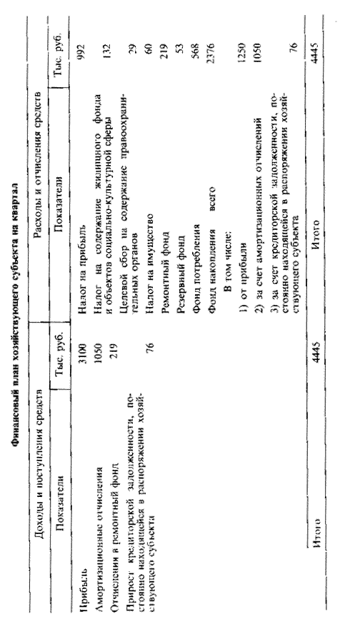 При превышении расходов над доходами определяется сумма недостатка финансовых средств. Эти дополнительные финансовые средства могут быть получены за счет выпуска ценных бумаг, за счет полученных кредитов или займов, за счет благотворительных взносов и т. н. Если источник дополнительных финансовых средств уже точно известен, то эти средства включаются в доходную часть, а возврат их в расходную часть финансового плана. Финансовый план составляется на год с разбивкой по кварталам, в условиях инфляции на квартал и корректируется с учетом индекса инфляции.