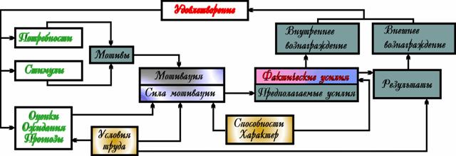 Согласно модели Портера-Лоулера, достигнутые результаты зависят от приложенных сотрудником усилий, его способностей и характерных особенностей, а также осознания им своей роли. Уровень приложенных усилий будет определяться ценностью вознаграждения и степенью уверенности в том, что данный уровень усилий действительно повлечет за собой вполне определенный уровень вознаграждения. Более того, в теории Портера-Лоулера устанавливается соотношение между вознаграждением и результатами, т.е. человек удовлетворяет свои потребности посредством вознаграждения за достигнутые результаты.