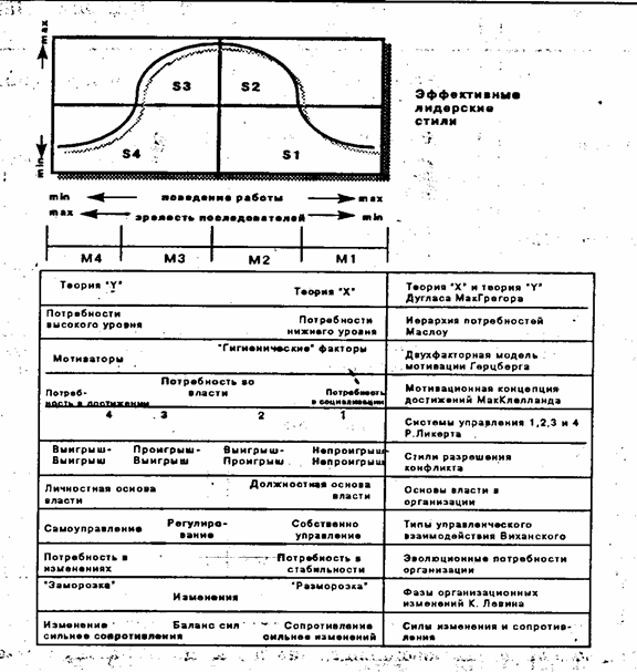 Рис. 6. Корреспондирование стилей ситуационного лидерства и других управленческих и поведенческих концепций.