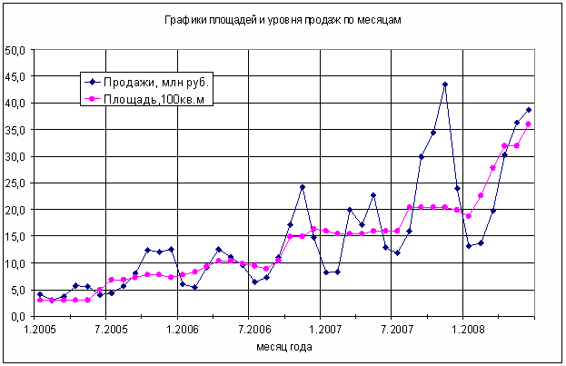 Рисунок 4. Динамика роста торговых площадей и уровня продаж