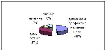 Из рис. 10 видно, что по целям пребывания большую долю приезжающих в Псковскую область, составляют люди, преследующие сугубо деловые и профессиональные цели, и которые, как видно из рис. 10, не задерживаются в области на более чем до 3 суток.