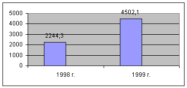 По туристическим визам в Россию из всех стран мира в 1999 г. было отмечено 4502,1 тыс. чел., что на 2257,8 тыс. больше, чем за 1998 г. Прирост составил 100,6 % (рис. 4) [42].