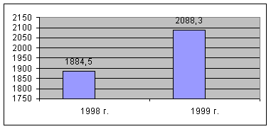 На рис. 5 видно, что из стран дальнего зарубежья в 1999 году прибыло 2088,3 тыс. человек – на 203,8 тыс. больше чем за 1998 г. [42]