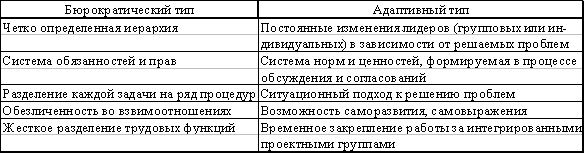 Необходимо отметить, что адаптивный тип структур управления находится лишь в начальной фазе своего развития, и в чистом виде его используют пока немногие организации. Но элементы этого подхода к структуре управления получили довольно широкое распространение, особенно в тех компаниях, которые стремятся приспособиться к динамично меняющейся среде.