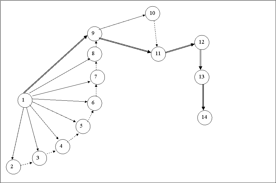Путь – это непрерывная последовательность работ, начиная от исходного события и заканчивая завершающим. Путь, имеющий наибольшую продолжительность называется критическим путем и изображается двойной линией.