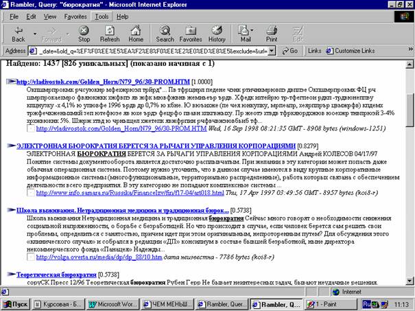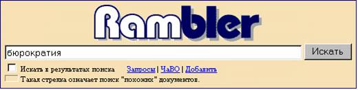 Метод и инструмент исследования. Основным инструментарием при исследовании стала российская поисковая система "Rambler" ("Рыскатель").