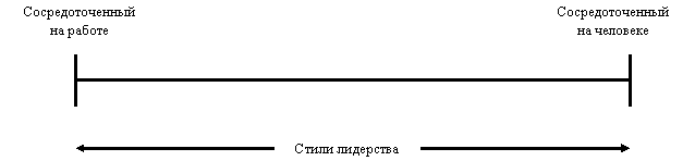 Рэнсис Лайкерт и его коллеги в Мичиганском университете разработали альтернативную систему, сравнивая группы с высокой производительностью труда и группы с низкой производительностью в различных организациях. Они считали, что разницу в производительности может объяснить стиль лидерства. Аналогично континууму по теориям “Х” и “Y” МакГрегора, руководители групп с высокой и низкой производительностью классифицировались по континууму, находящемуся в пределах от одной крайности - сосредоточенные на работе (теория “Х”), до другой - сосредоточенные на человеке (теория “Y”). Этот континуум представлен на Илл 2 [4].
