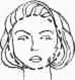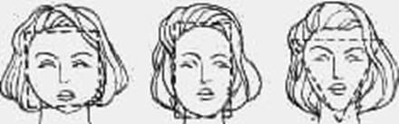Треугольное лицо отличают широкие скулы, увеличивающие верхнюю его часть, и узенький подбородок, сужающий его книзу.
