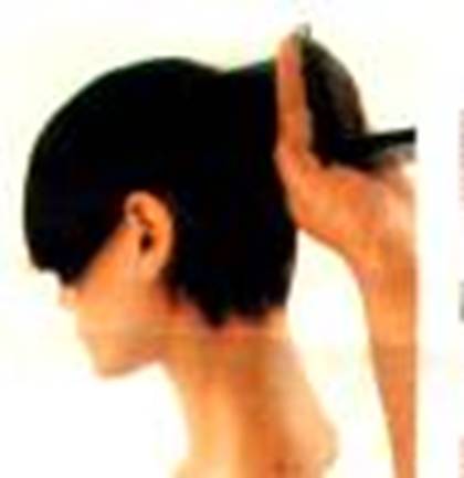 Выделите зону пробором от уха до уха через наивысшую точку головы Стригите волосы начиная с центрального вертикального пробора затылочной зоны оттягивая последующие пряди к ушным раковинам Продвигаясь вниз от теменное к затылочной зоне применяйте такую же технику отбора прядей у и стрижки на противоположной ложной стороне головы.