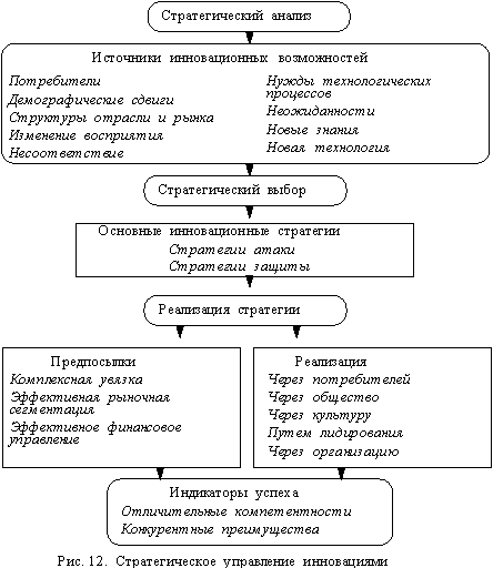 Как известно, идентификация или определение стратегии – лишь начальный этап стратегического менеджмента. В целом стратегический менеджмент инноваций может быть представлен схемой на рис. 12.