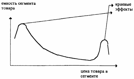 Рис.4. Графическая интерпретация зависимости емкости сегмента от цены товара в сегменте.