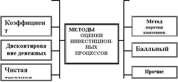 Существует несколько методов оценки инвестиционных проектов (рис.8). Все они основаны на оценке и сравнении объема предполагаемых инвестиций и будущих денежных поступлений, обусловленных инвестициями.