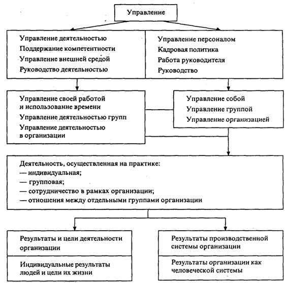 1) управление деятельностью, которое складывается из планирования деятельности, постановки производственных задач, создания системы измерения производственной работы, контроля за выполнением заданий;