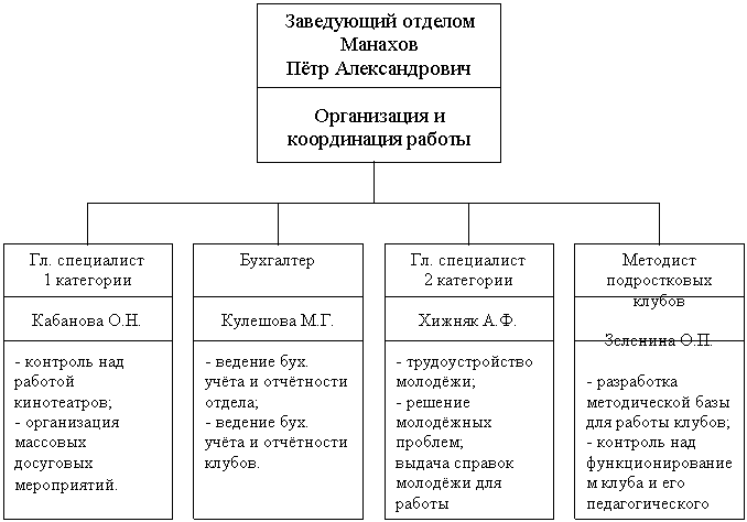 Управленческое обследование отдела по делам молодежи и культуры следует начать со знакомства с общим руководством.