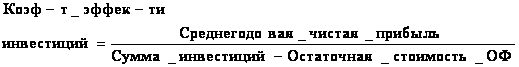 Полученный коэффициент эффективности инвестиций целесообразно сравнить с коэффициентом эффективности всего капитала предприятия, который можно рассчитать на основе данных баланса по формуле: