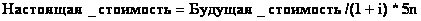 2. Настоящая (сегодняшняя) стоимость будущих платежей, получение которых возможно при определенной ставке процента i в течение n периодов, определяется по формуле: