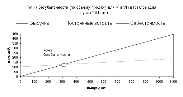 Те = 282 > 1000 шт. по плану, то есть безубыточность проекта обеспечена.